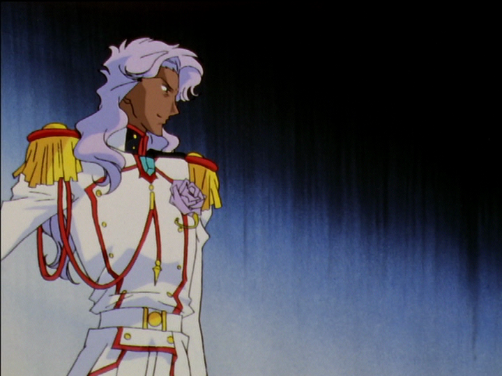 Utena’s self-image as a prince is injured a little later, when Dios comes up and talks at her. After that, her prince uniform is depicted as battered, with cracked epaulets. The pen is mightier than the sword, and talking can create and destroy worldviews where weapons cannot. Akio knew that when playing Dios. Utena consistently says that deception is more powerful than violence.