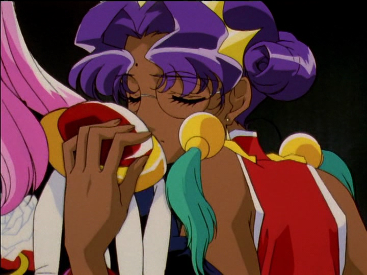 The irony is thick here. Anthy and Utena fell in love. Akio separated them by showing each, with convincing evidence, that the other had betrayed her to be with Akio. Utena did betray Anthy, hurting her. Now Utena has reversed course and turns against Akio, threatening to defeat him to free Anthy. Anthy does not seek freedom, or consider it possible; she wants the relative security of stability. She is hurt again in the opposite way. Anthy can’t get a break, and therefore she can’t give Utena a break.