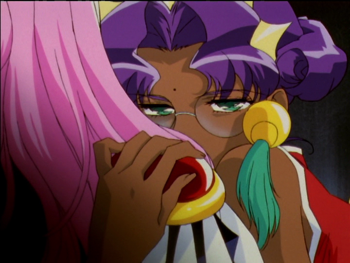 Though Anthy murderously attacks Utena, her petticoats are pink. She attacks Utena in hatred but still loves her. Anthy is deeply confused.