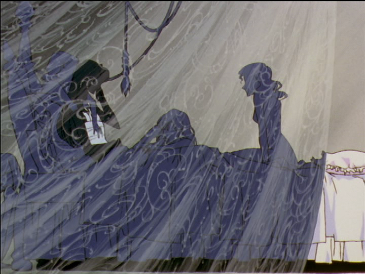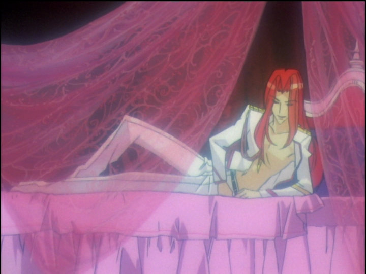 Curtains around a bed make it high-class. Utena’s blanket is low-class. Touga seems to have absorbed Akio’s value system.