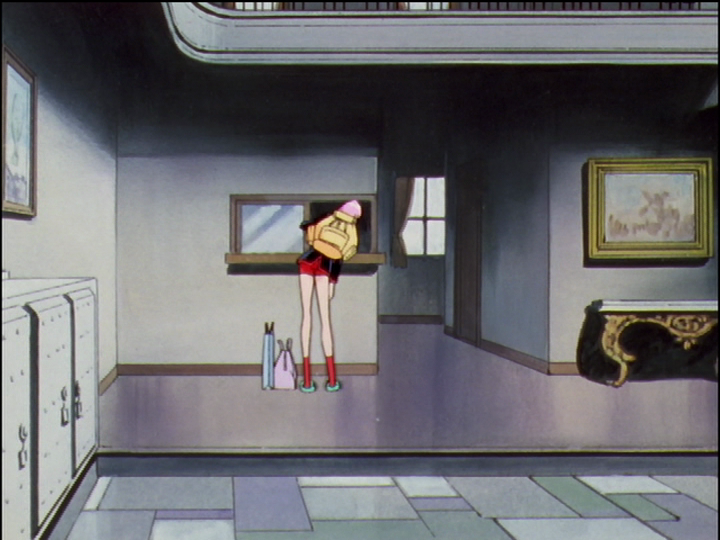 Utena is made girlish. When she lost her grip on the rim, her fingernails were long. On the ground, her breasts are drawn larger than in other basketball images. She has a small bruise on her lip where Akio will later kiss her. It can be a time reversal.