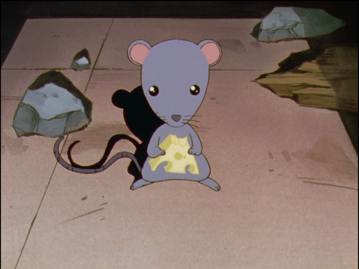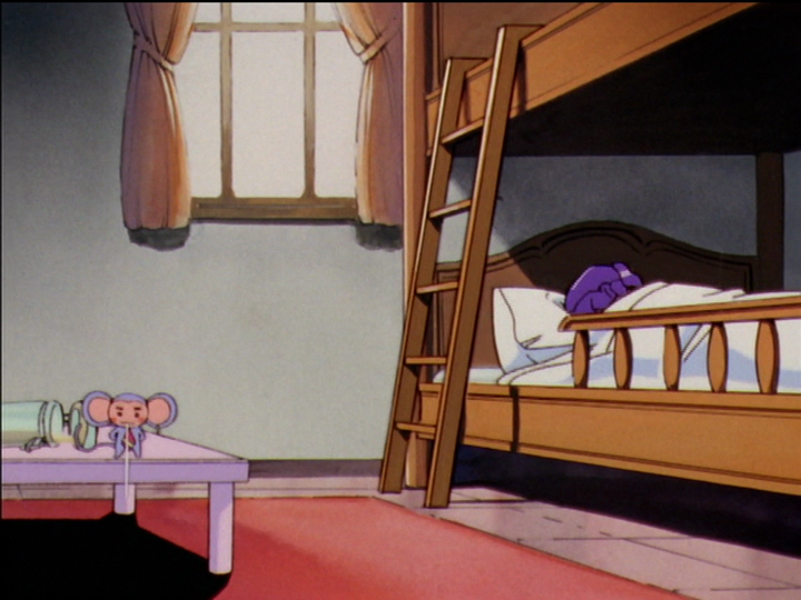Wakaba told Utena that the dorm Utena was to move into had been unused for ten years. (Compare meeting in ten years, mentioned in episode 37.) When Utena reaches the room, she imagines opening the door to see the room in ruins, inhabited only by a mouse that somehow found cheese in the old and dirty debris. Later, she meets Chu-Chu.
