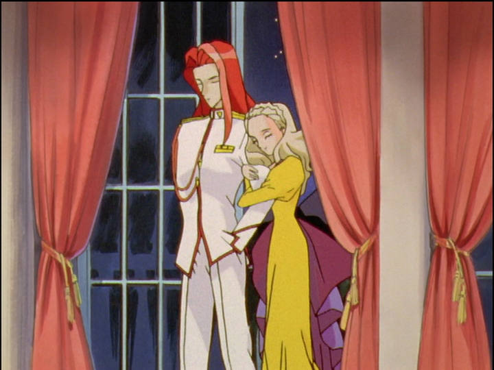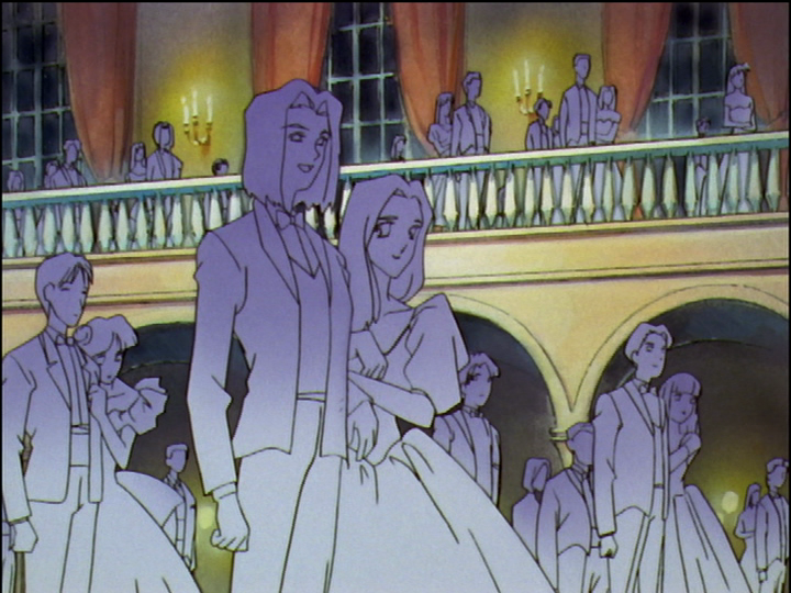 In the dance party, background couples are depicted with the woman glommed on to the man’s arm. Seconds later, Touga and Nanami emerge from the balcony, Nanami glommed on to Touga’s arm.