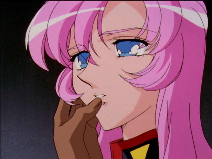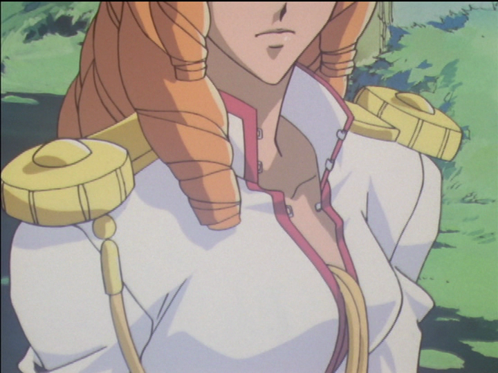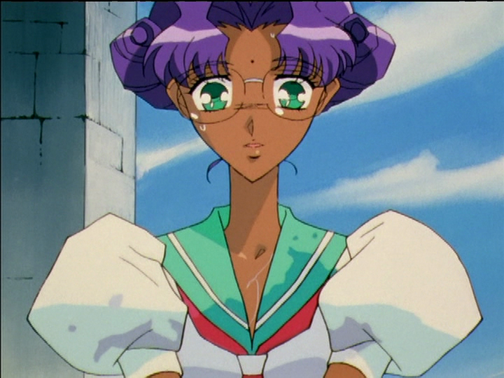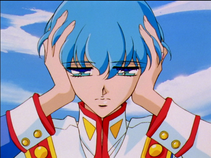 Stupid face. She makes this expression when she is going wrong and her rational thinking breaks down. On the left, she believes she has convinced Anthy to open her heart and make friends. On the right, her hand has touched Akio’s on the first aid kit, and the feeling of attraction overpowers her reason. “Oh gosh our hands touched! So dreamy!” Twice in episode 11, Utena and Anthy both make the stupid face: Once when Utena thinks Touga is about to kiss her; again before the duel. Another is after Akio’s rescue in the Second Seduction of episode 36, when Utena’s brain shuts down completely, leaving only admiration.