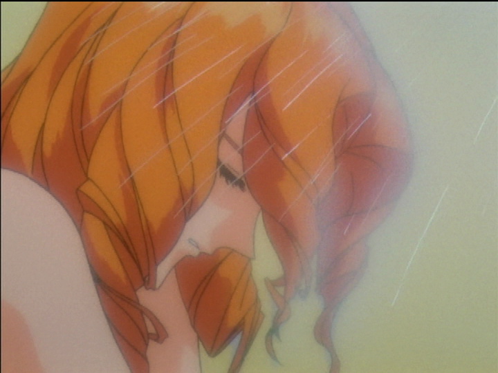 Pained faces. Juri in the shower is in emotional pain. Utena fell when distracted while playing basketball, and is in physical pain. Compare Anthy distracting Miki in the duel of episode 5. I think Juri is facing right because her pain is due to reality, while Utena is facing left because her pain is due to illusions—Akio engineered Utena’s fall as part of his corruption and seduction plot.