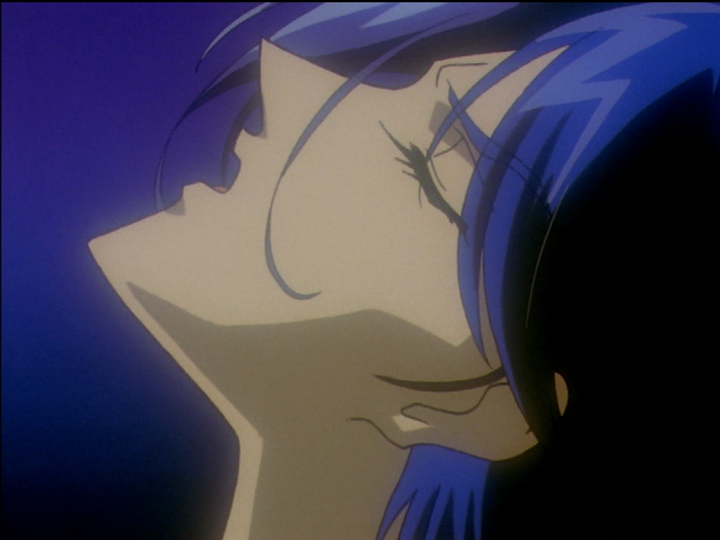 They are pictures of Utena turning away from, and closing her eyes against, accusations that she feels are true and painful. She feels guilt. The closed eyes mean not wanting to see: They stand for everyone’s reflexive aversion to admitting that they’ve violated their own moral code. Utena does not counter Akio’s argument that she has sinned, because she agrees that she has. She sidesteps it as irrelevant to her motivations at the moment.
