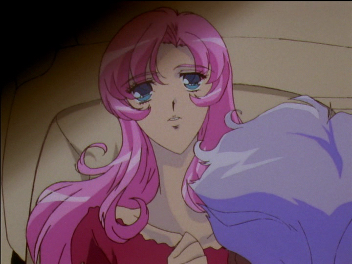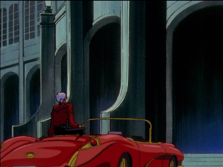 We don’t get as clear a view when Anthy is in Akio’s car in episode 37 (picture on the right), but it’s similar. In my interpretation, this is the scene where Akio tells Anthy that Utena is to die.