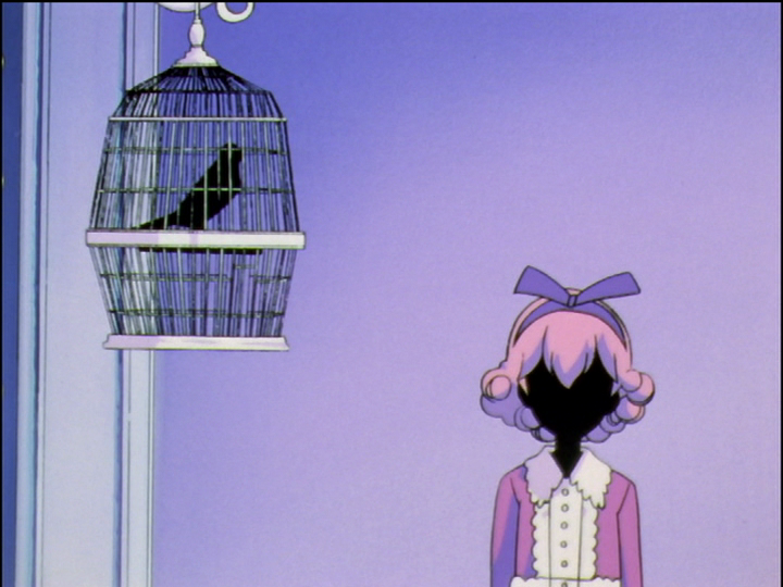 At the moment, Juri and Utena are conforming to their sex roles, talking through the cages of the windows. Later in the episode, they break from their roles and duel in the paved dueling arena. The images say that Juri and Utena are alike in that way.