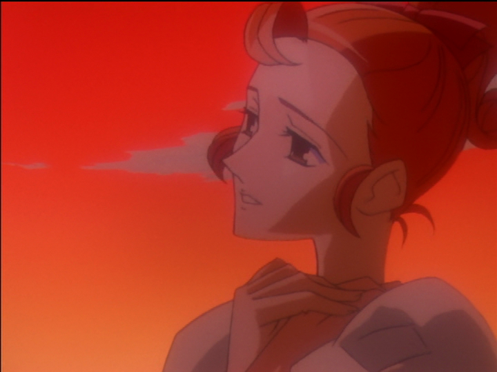 When Anthy cries out during the dance party, Utena is standing with her hands clasped. Before this, talking with Touga, she showed the blush of attraction and vibrating eyes as she suspected that Touga was her prince. She wants Touga (she is no different than many other girls in that way) but rejects him, in order to maintain her illusion that she loves only her prince.