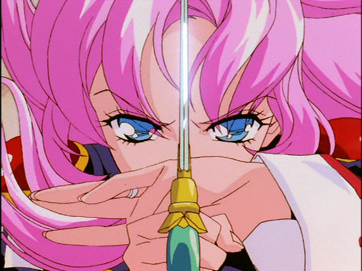 Utena’s male marking and the implied attraction between the two is subversive, but only along one axis. It accepts most of the cultural expectations around boys and girls, reversing one point. It’s not revolutionary; Utena is not about rapid revolution but about step-by-step change (which does eventually amount to a revolution). To help Anthy escape the trap she is in, Utena must adhere to convention enough to attract conventional Anthy’s interest, and must break convention enough to help her escape.