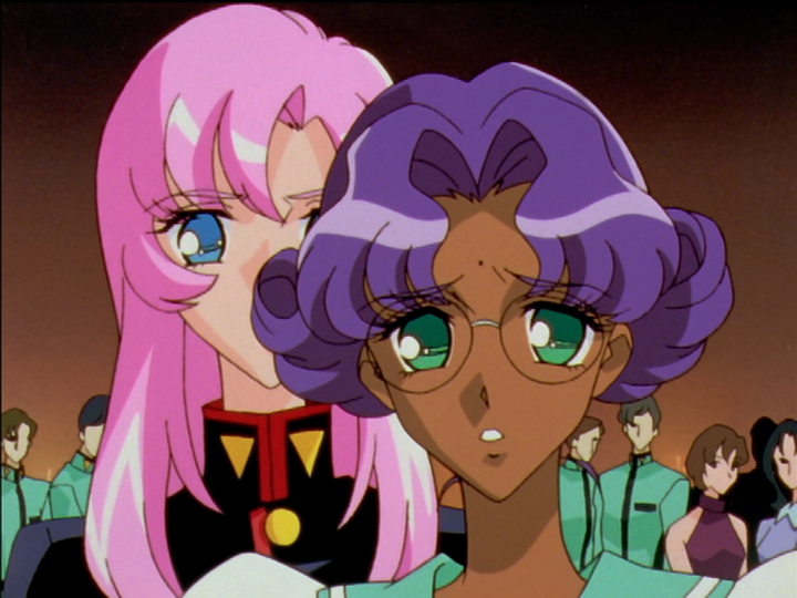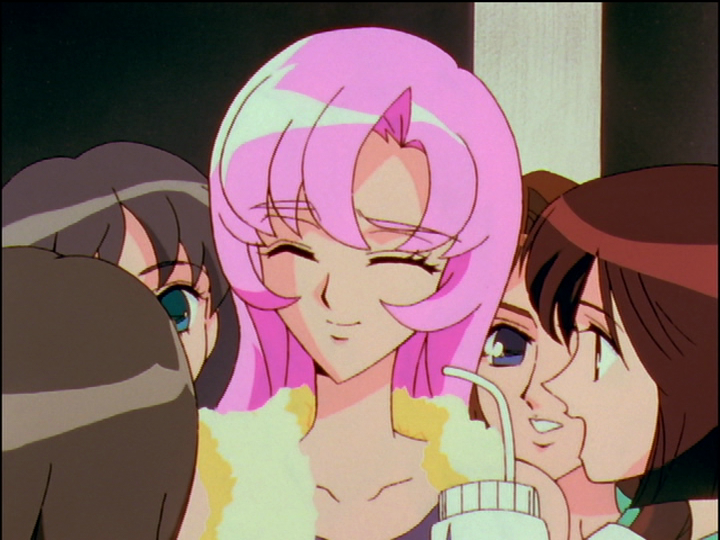 To love women is to help Akio’s victims and stand against him. We don’t see girls casually touching each other like the boys do. Yuri elements are hidden in some way. Wakaba pretends that her desire for Utena is a joke. Juri does not speak of her desire for Shiori. Kanae does not even recognize her desire for Anthy. Utena is apparently not attracted to Anthy at first; she imagines that Saionji is her boyfriend and seems to find that OK. But Utena does call out Saionji’s violent abuse and insists that Anthy should not put up with it; the potential was there. Anthy at first shows no sign of attraction to Utena, and seems to choose her as a chance to get away from Saionji. But Utena’s prince roleplay convinces her over time.