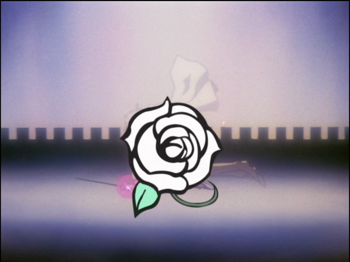 • Episode 21. Keiko gets a single white spinning rose in the upper left when she sees Touga walking in the rain without an umbrella. It’s white because Touga is her prince. In the next shot, of Touga walking away, he gets a single white spinning rose in the upper right. Both spin clockwise.